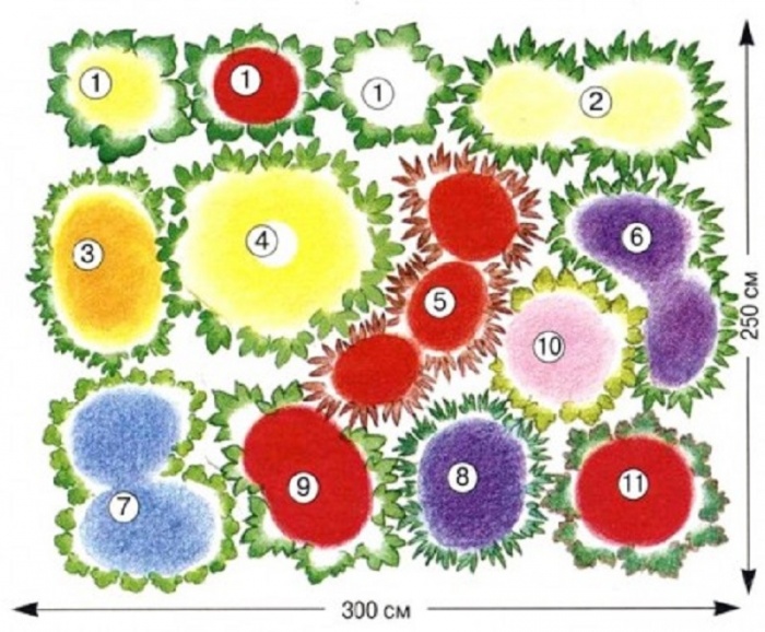 Цветник на рисунке изображен на момент наибольшего цветения – в июле.
