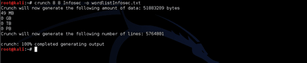 Рисунок 2: Создание словаря в Crunch, состоящего из 8-символьных элементов